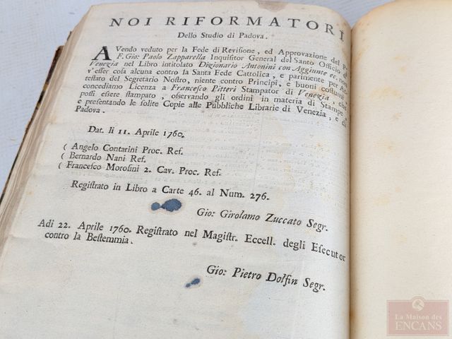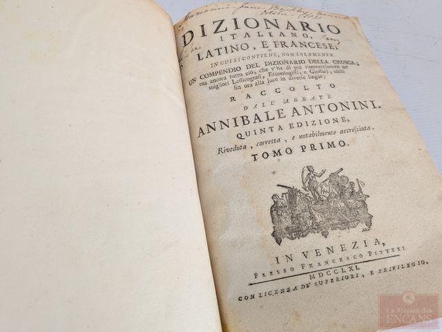 Lot # 140 - Livre ancien Dizionario Italiano, Latino, e Francese, datant de 1761 SOLD