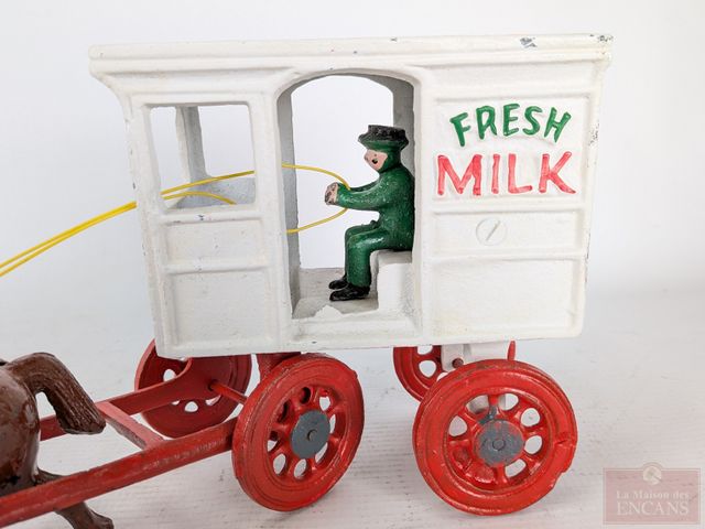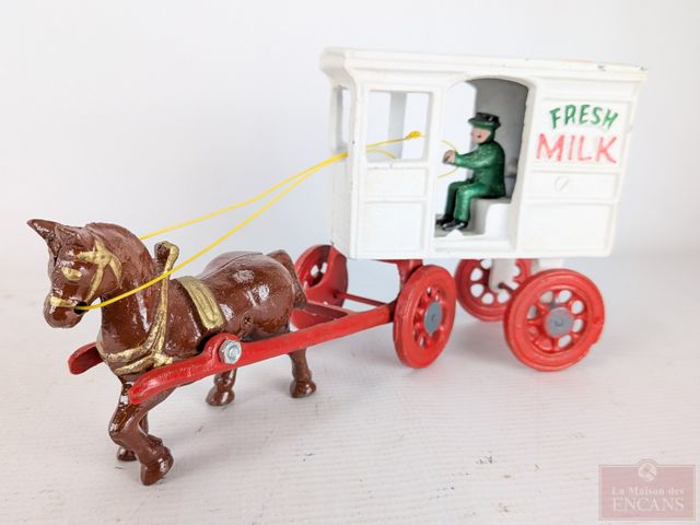 Lot # 29 - Chariot de laitier avec son cheval et personnage, faits en fonte et mesurant 10 pouces de longueur SOLD