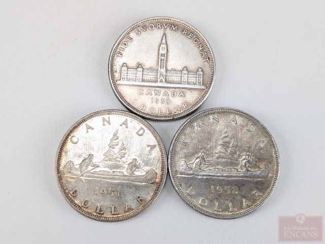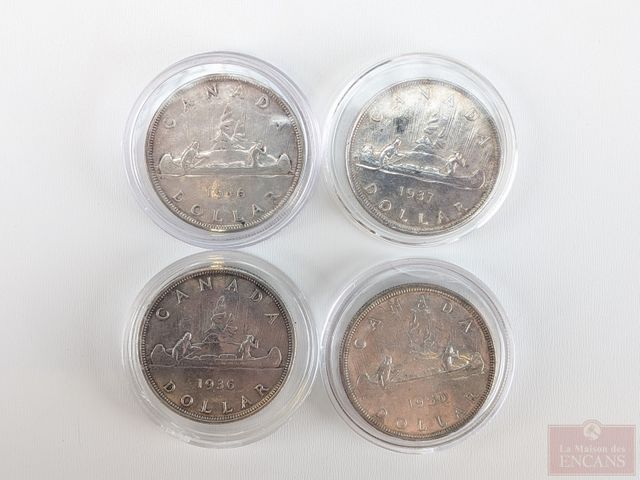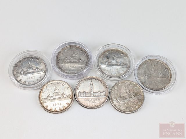 Lot # 113 - Lot de pièces canadiennes d'un dollar en argent, comprenant 1936-37-39-46-50-51-52 SOLD