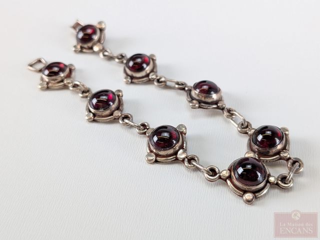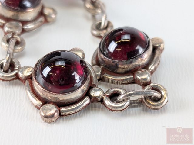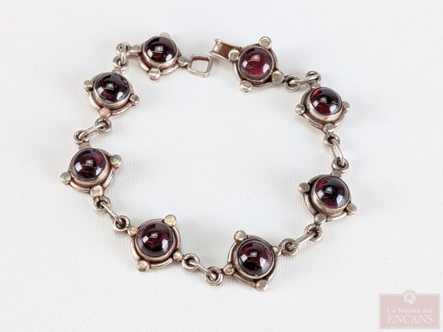 Lot # 91 - Bracelet en argent sterling serti de multiples grenats cabochons, mesurant 6.5 pouces de longueur SOLD
