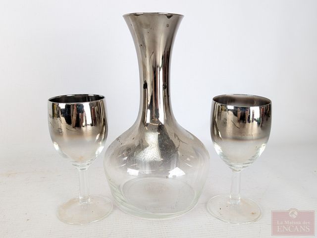 Lot # 142 - Ensemble de verres et carafe Dorothy Thorpe, avec support mesurant 13 pouces de hauteur SOLD