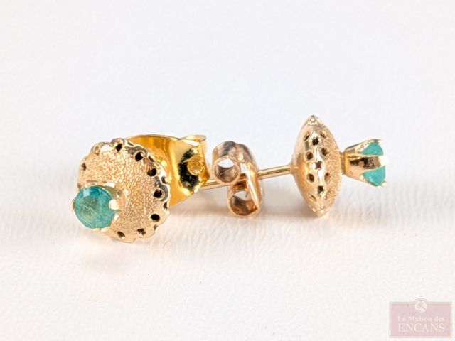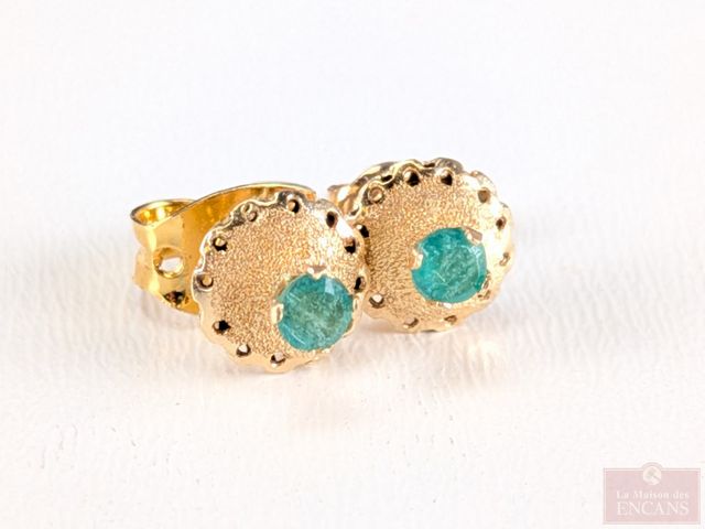Lot # 213 - Paire de boucles d'oreilles en or 14k serties d'émeraudes naturelles SOLD