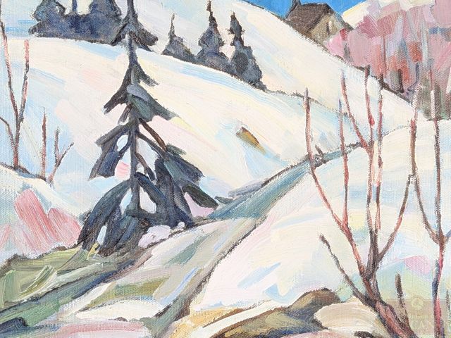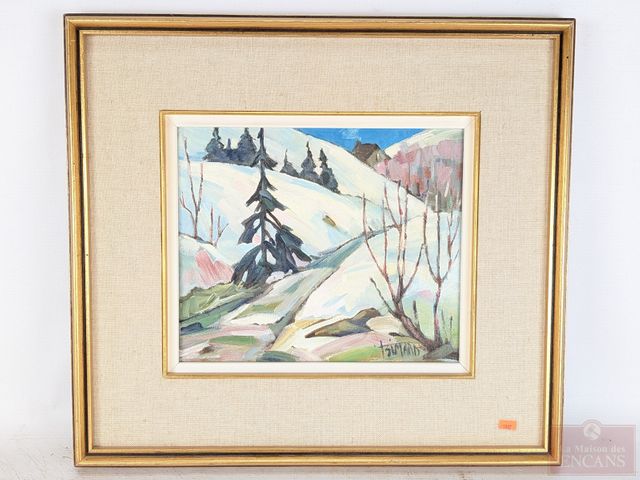 Lot # 19 - Fleurette SIMARD- Huile sur toile signée, mesurant 10x12 pouces et titrée En bas de la côte Sainte-Adèle SOLD