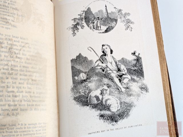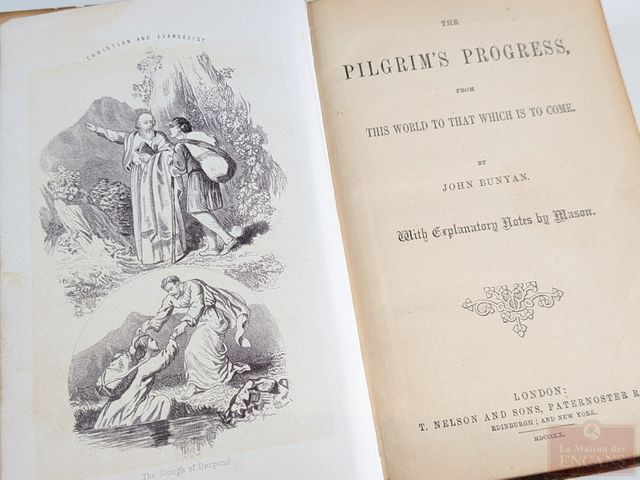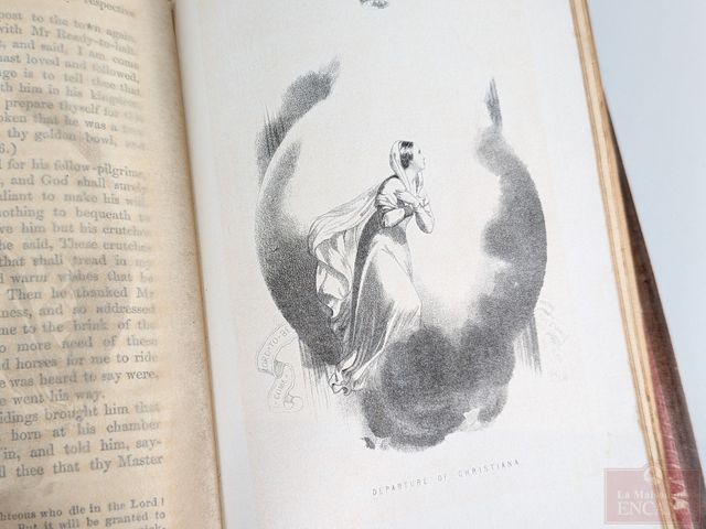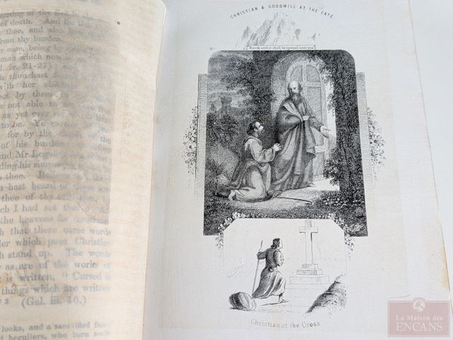 Lot # 100 - Livre ancien Pilrgim's Progress avec tranche dorée, édité à Londres, datant de 1860, comprenant de multiples gravures et mesurant 6.75 pouces SOLD