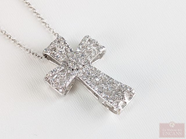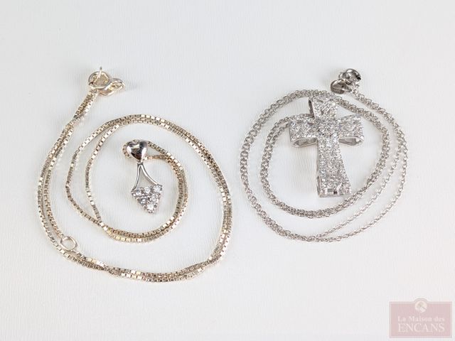 Lot # 98 - Deux chaines avec pendentifs en argent, les chaines mesurant 18 pouces de longueur et la croix mesurant plus d'un pouce SOLD