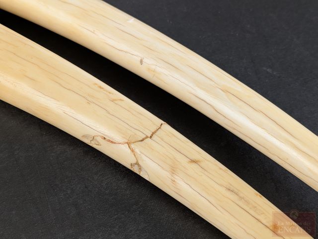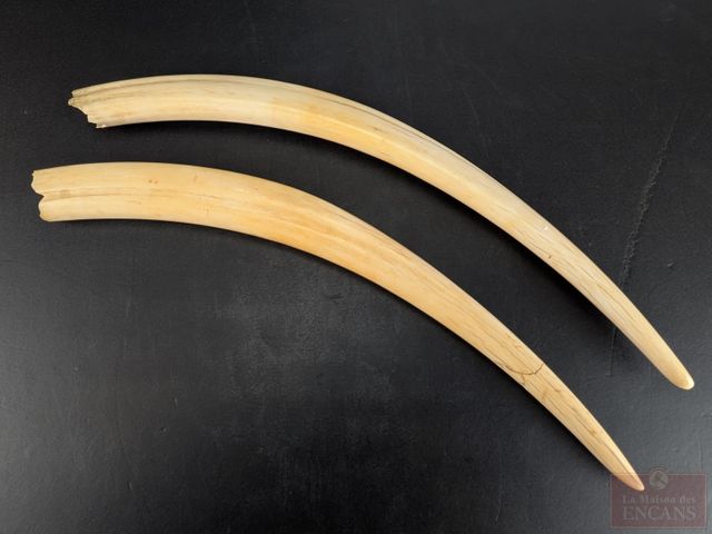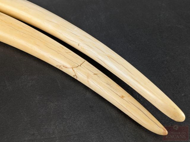 Lot # 78 - Paire de défenses de morse provenant du grand-nord, datant des années 1960 et mesurant 19 pouces de longueur (une avec réparation) SOLD