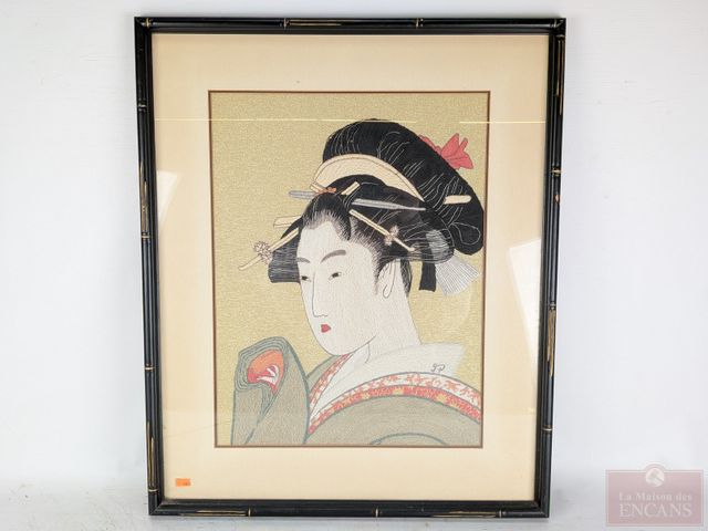 Lot # 57 - Œuvre japonaise vintage en soie, finement tisée à la main, signée et mesurant 18x14 pouces SOLD