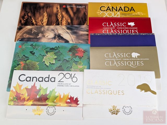 Lot # 232 - Lot numismatique canadien comprenant ensembles hors-circulation 2001, 2003, 2004, 2013, 2014, 2016, 2017, 2018, 2019 ainsi qu'ensemble 2022 SOLD