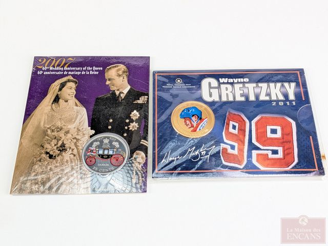 Lot # 203 - Lot numismatique canadien comprenant vingt-cinq sous Wayne Gretzky, 60eme anniversaire de la victoire de la seconde guerre mondiale, Titanic, pièce lenticulaire et autres SOLD