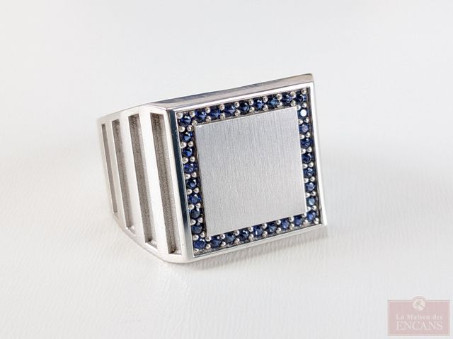 Lot # 192 - Bague en argent sterling faite sur-mesure, sertie de multiples saphirs et signée OSA, taille 9.25 SOLD