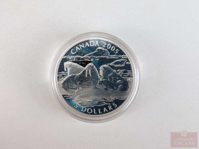 Lot # 223 - Pièce de cinq dollars en argent pur 9999 Les morses 2005, encapsulée, sans taxes SOLD
