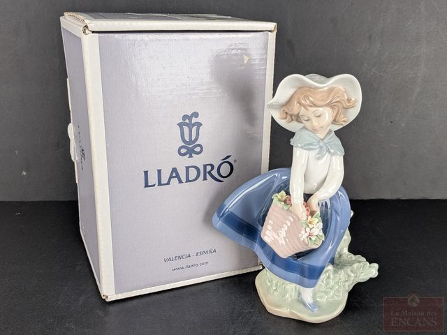 Lot # 36 - Porcelaine Lladro modèle Pretty Pickings Girl, mesurant 6.5 pouces de hauteur, dans sa boite d'origine SOLD