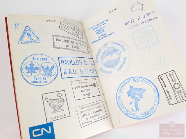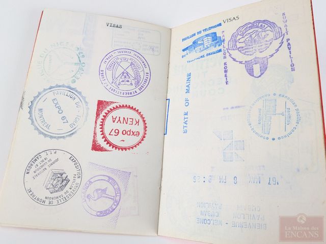 Lot # 127 - Lot de l'Expo 67 comprenant sac mesurant 10 pouces et passeport contenant plusieurs visas SOLD