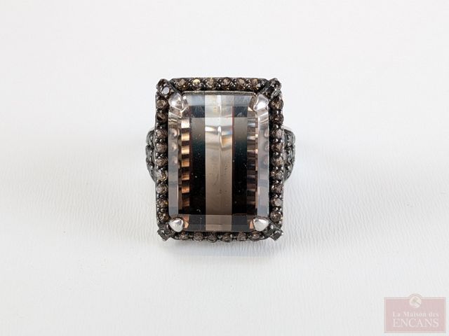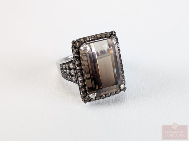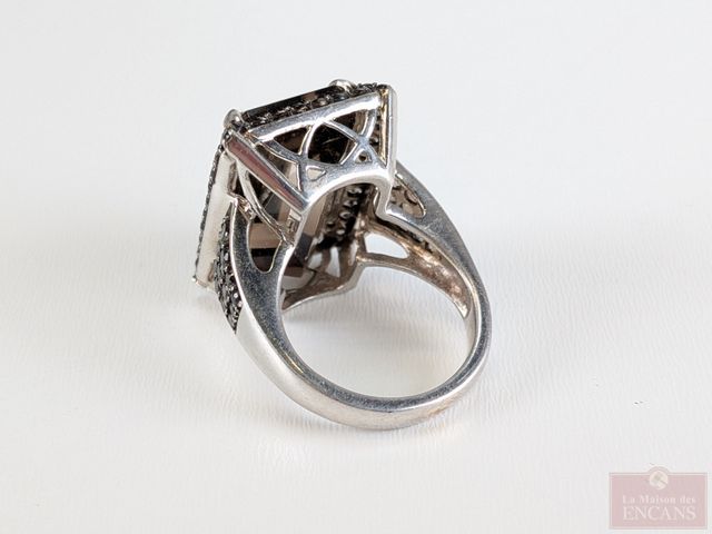 Lot # 86 - Bague en argent sterling sertie de quartz fumés, taille 6.25 SOLD