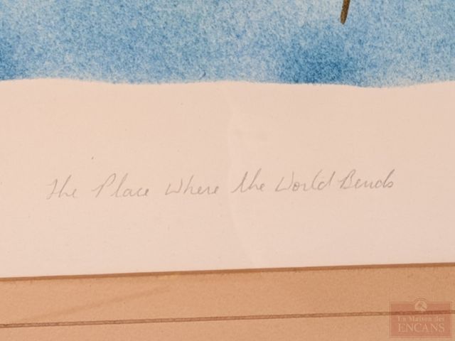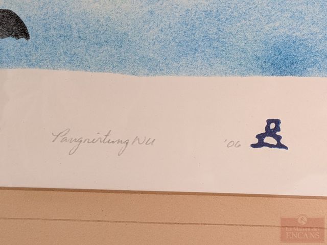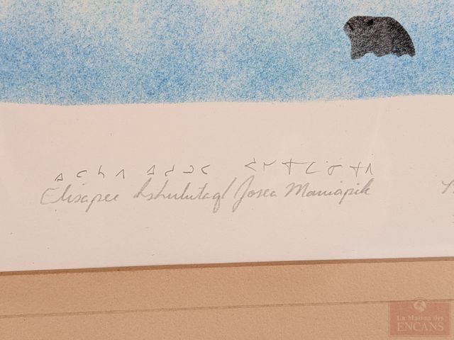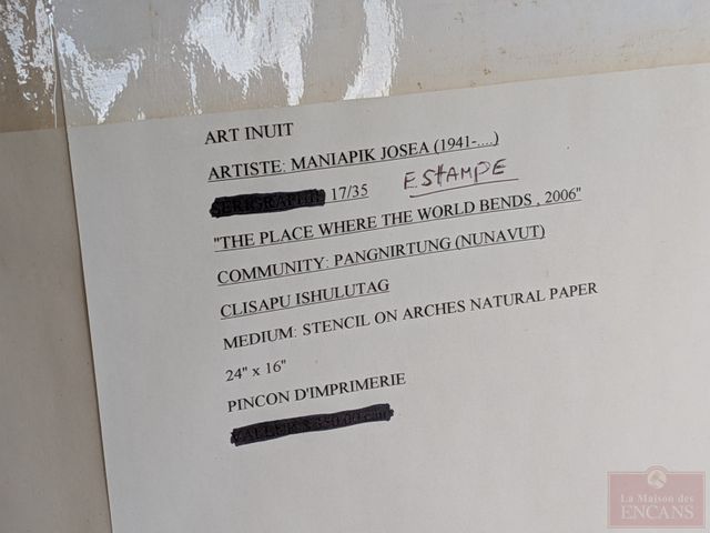 Lot # 51 - Josea MANIAPIK- Eau-forte aquateintée inuite sur papier d'arche, signée et numérotée à la mine, datant de 2006, mesurant 13x22 pouces et titrée The Place Where the World Bends SOLD