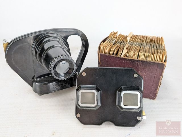 Ancien Viewmaster en bakélite avec ses diapositives, ainsi que rare projecteur Viewmaster
