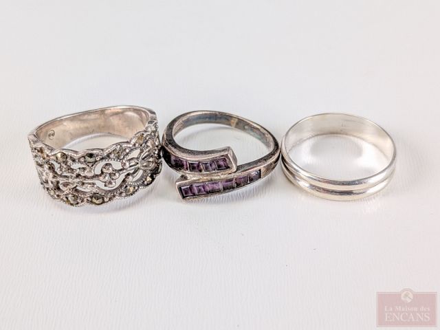 Lot # 65 - Trois bagues en argent sterling de tailles 5.5, 6 et 6.75 SOLD
