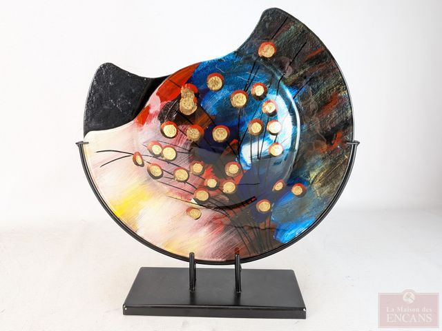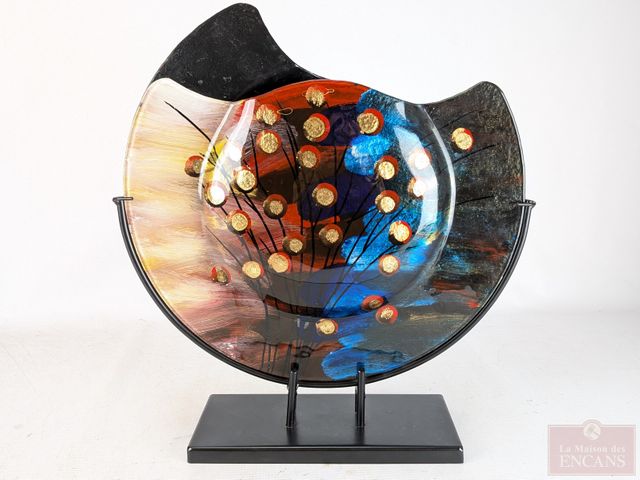 Œuvre en verre peinte à la main et mesurant 16.5 pouces de hauteur