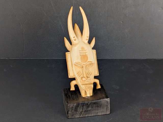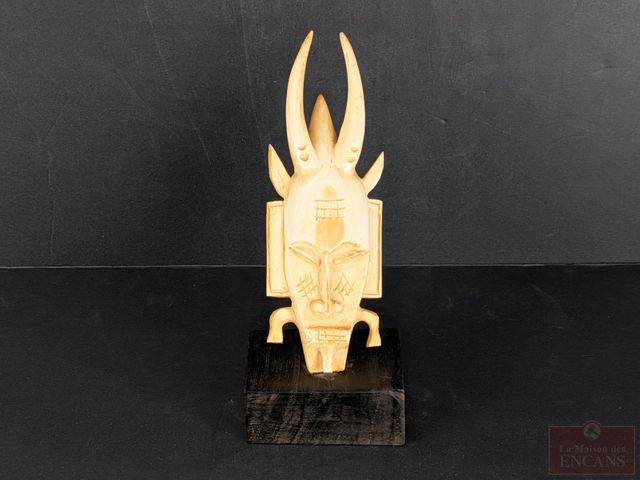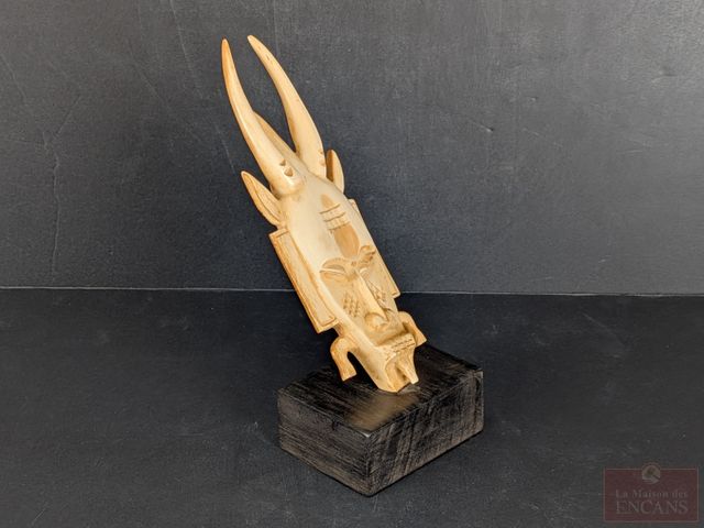 Lot # 93 - Sculpture africaine sur ivoire avec base en ébène, datant des années 1950 et mesurant 8 pouces de hauteur