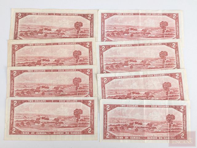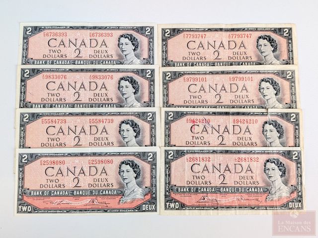 Lot de billets canadiens de deux dollars 1954, avec différentes signatures