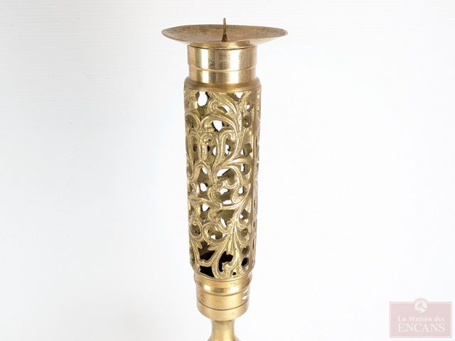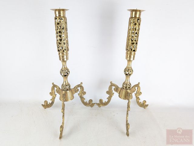 Lot # 3 - Paire de bougeoirs en laiton massif, mesurant 21 pouces de hauteur