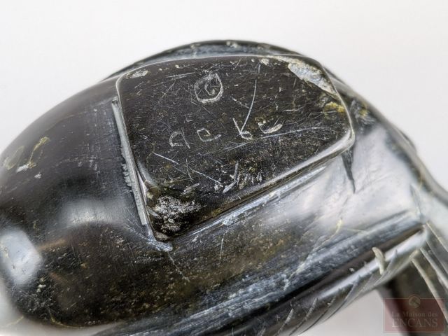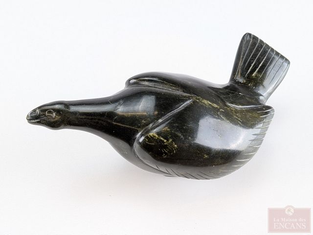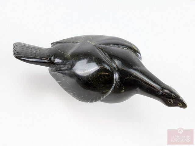 Lot # 122 - Sculpture inuite sur pierre à savon, signée en inuktitut, représentant un oiseau arctique et mesurant 8.5 pouces
