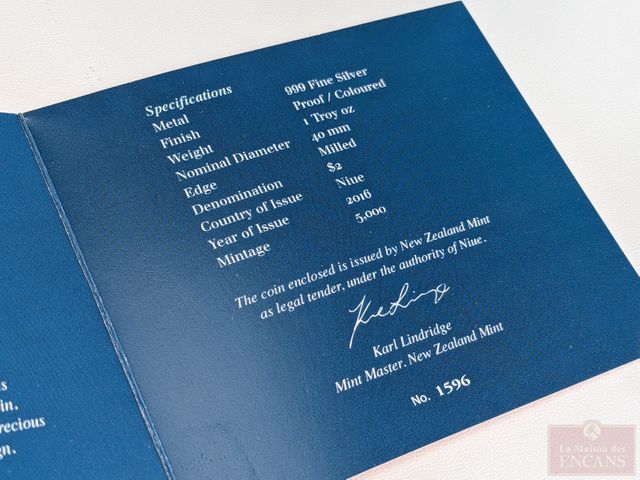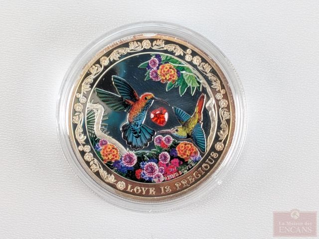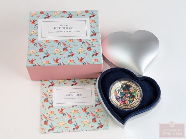 Lot # 219 - Pièce d'une once d'argent pur 999 de la Nouvelle-Zélande Love is Precious sertie d'un zircon, dans sa boite avec certificat, sans taxes