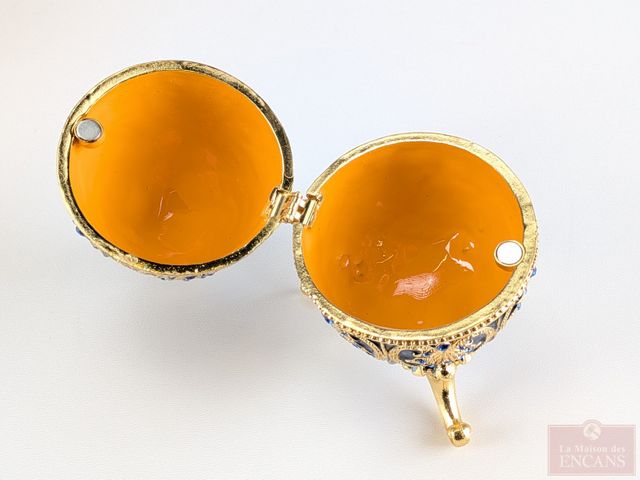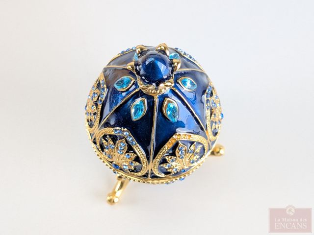 Œuf d'inspiration Fabergé en métal émaillé et serti de multiples cristaux, mesurant 4.5 pouces
