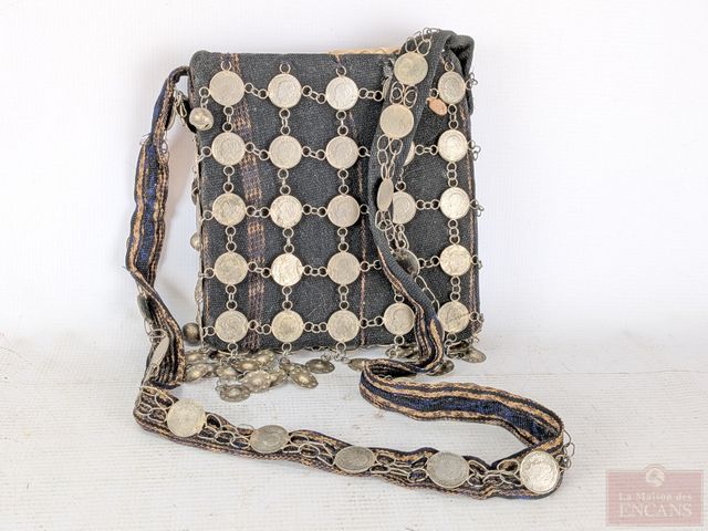 Lot # 164 - Sac berbère avec anciennes pièces de monnaies, le sac mesurant 8 pouces de largeur