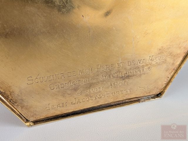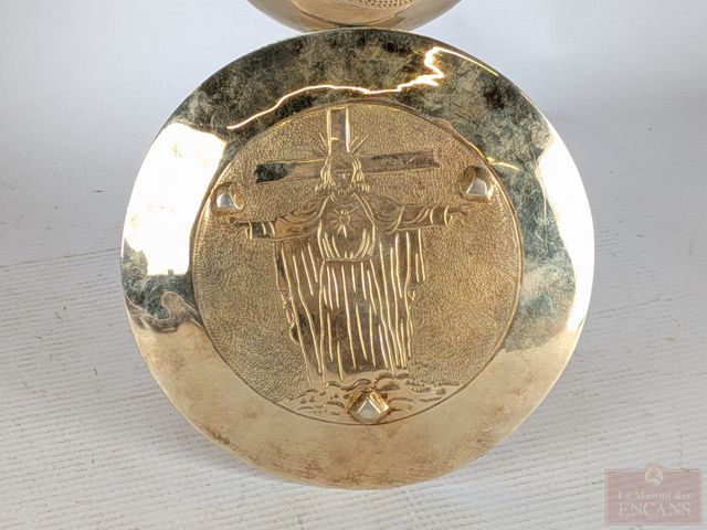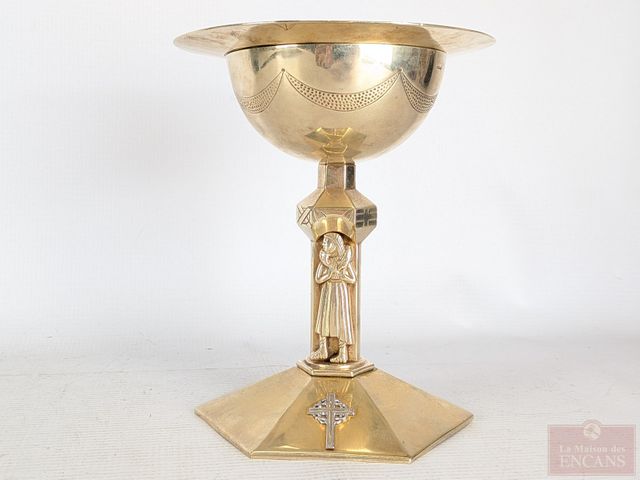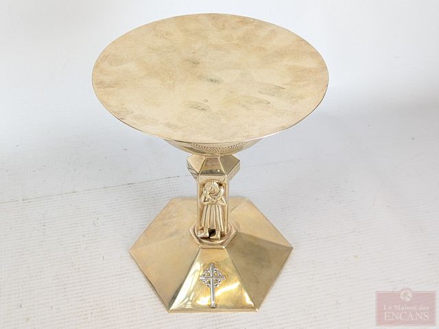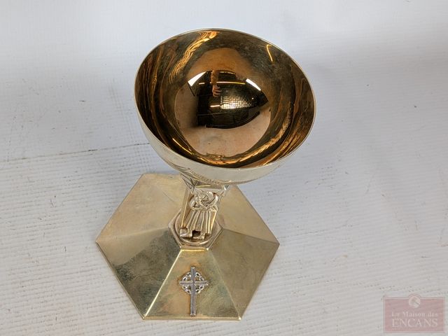 Lot # 155 - Calice avec sa coupe et patène en argent sterling vermeil, datant de 1955 et mesurant 7.25 pouces de hauteur