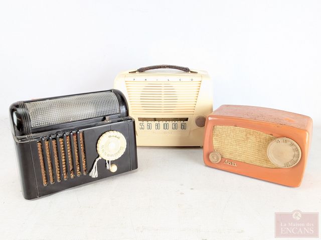 Lot # 13 - Lot de quatre radios à lampes vintages, comprenant une Stertone 100 faite en Pologne, une Philco, une Mitchell Ulabi en bakélite et une Arvin 20, la plus grande mesurant 21.25 pouces