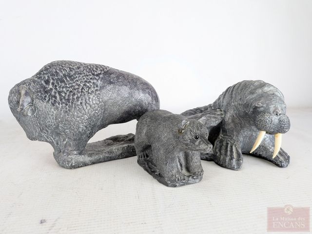 Trois sculptures Wolf Canada, la plus grande mesurant 8.5 pouces