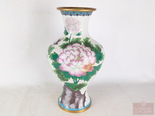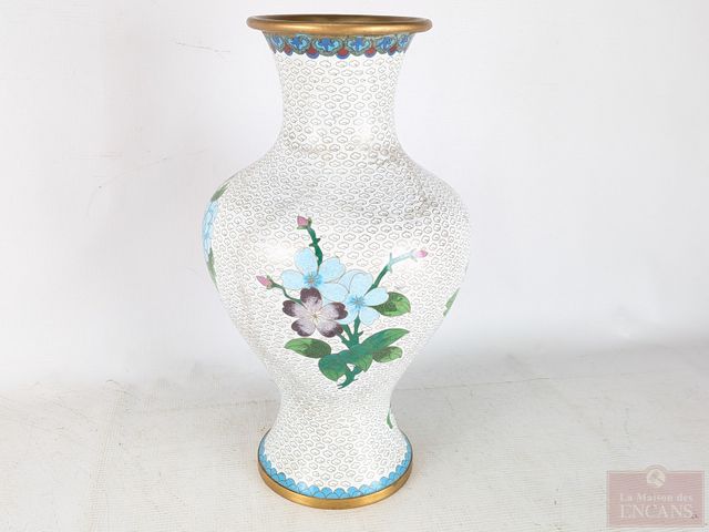 Grand vase chinois en métal cloisonné, mesurant 15.5 pouces de hauteur