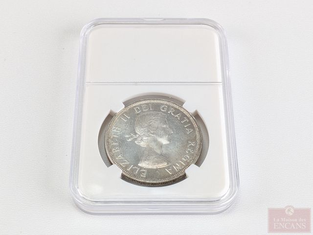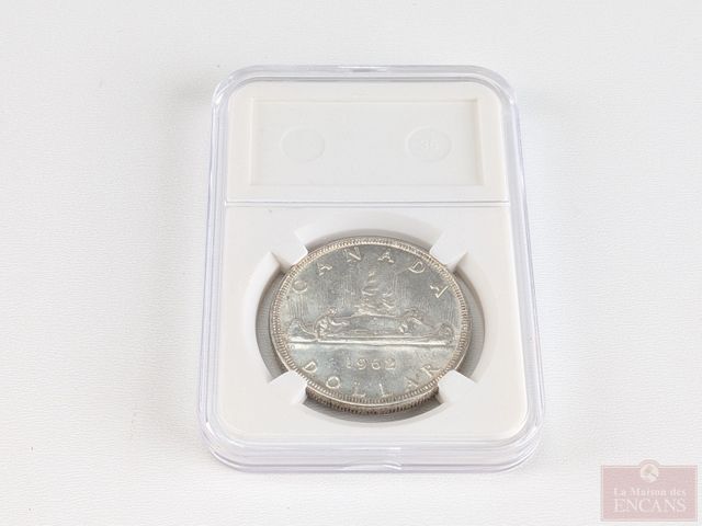 Pièce canadienne d'un dollar 1962 en argent, encapsulée