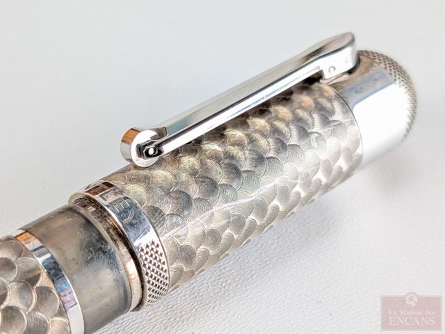 Lot # 181 - Plume de collection Bentley en argent sterling avec pointe en or 18k, édition limitée numérotée 151 sur 400 avec multiples poinçons, faite par Tibaloi en Italie, dans son coffret en érable piqué mesurant 11.75 pouces, avec sa clef