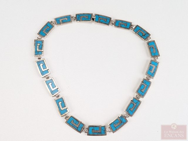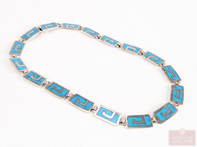 Lot # 223 - Collier en argent sterling avec turquoise, mesurant 16 pouces de longueur