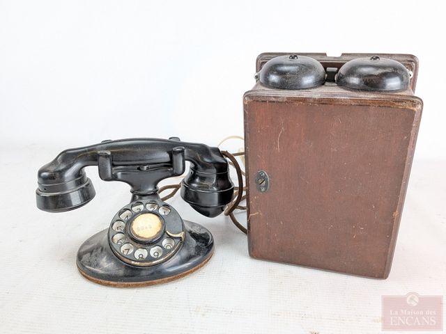 Lot # 22 - Deux anciens téléphones, dont un rare modèle art-déco datant des années 1930 et mesurant 9 pouces