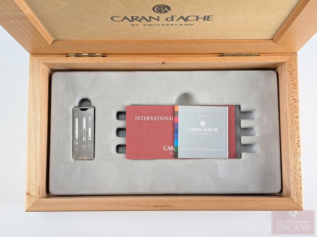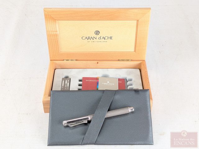 Lot # 201 - Plume-fontaine Caran d'Ache faite en Suisse, dans son coffret avec certificat et recharge d'encre, le coffret mesurant 8.25 pouces