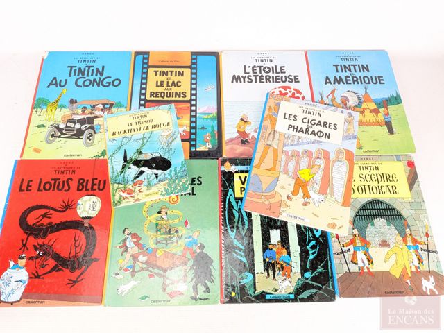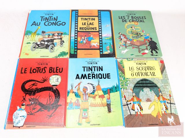 Lot # 48 - Lot de bandes-dessinées Tintin, dont Les sept boules de cristal, Tintin au Congo, Le lotus bleu et autres