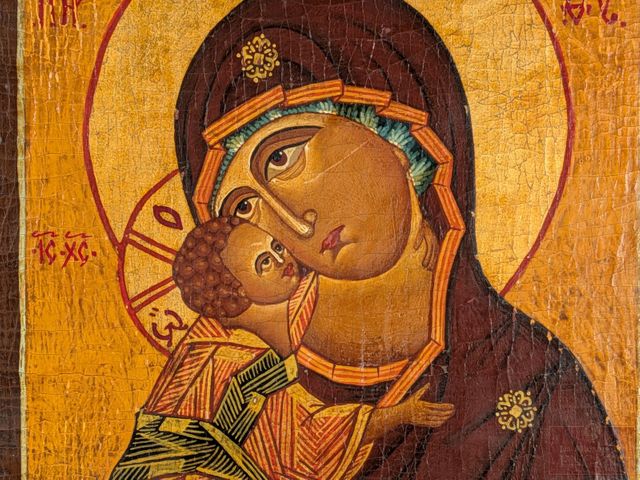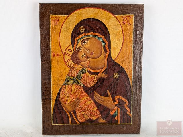 Lot # 57 - Icône orthodoxe sur bois, peinte à la main à la manière traditionnelle tempura et mesurant 12.75x9.75 pouces