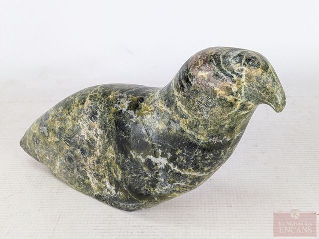 Lot # 166 - Sculpture inuite sur pierre à savon Cape Dorset, représentant un oiseau arctique et mesurant 10 pouces