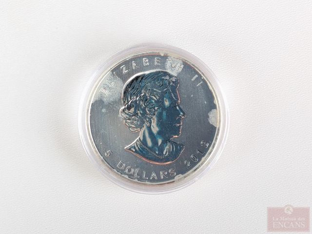 Pièce d'une once d'argent pur 9999 cinq dollars Feuille d'érable 2012, encapsulée, sans taxes