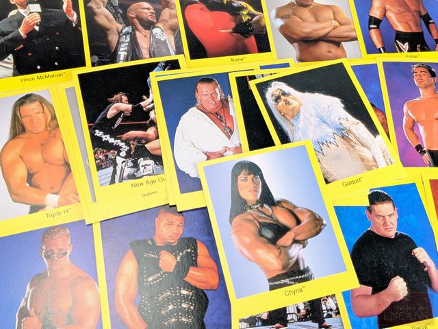Lot # 148 - Jeu vintage WWF, datant de 1999, avec cartes de lutteurs dont X-Pac, Mankind, Undertaker, Triple H, Owen Hart, Edge, The Rock, Kane, Stone Cold Steve Austin, Vince McMahon et autres
