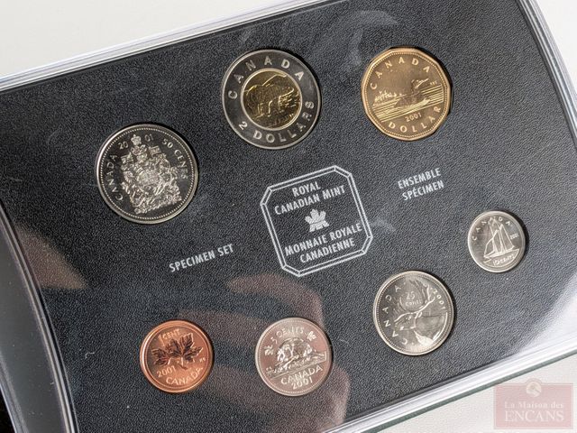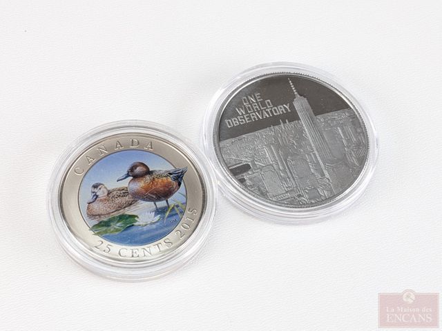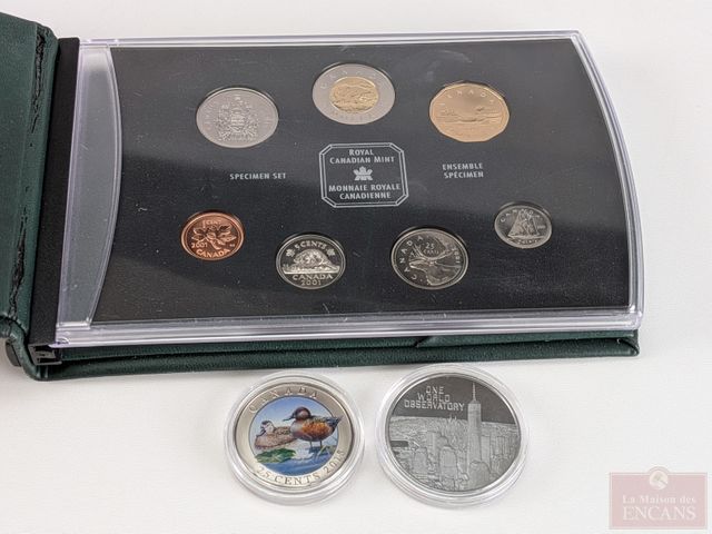 Ensemble spécimen canadien 2001, ainsi qu'une pièce canadienne de vingt-cinq sous 2015 et jeton de l'observatoire de New-York One World