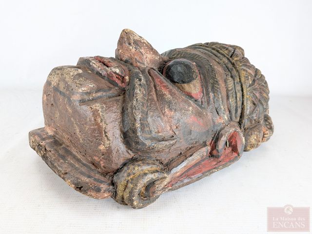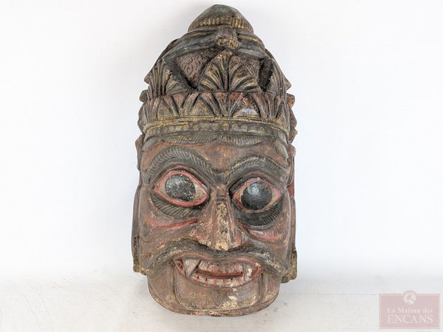 Lot # 133 - Masque indien sculpté sur bois et peint à la main, mesurant 21 pouces de hauteur