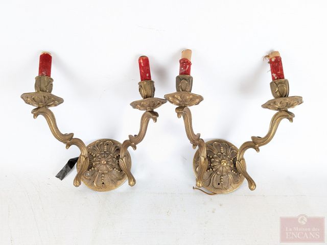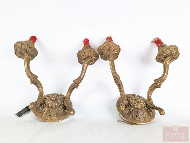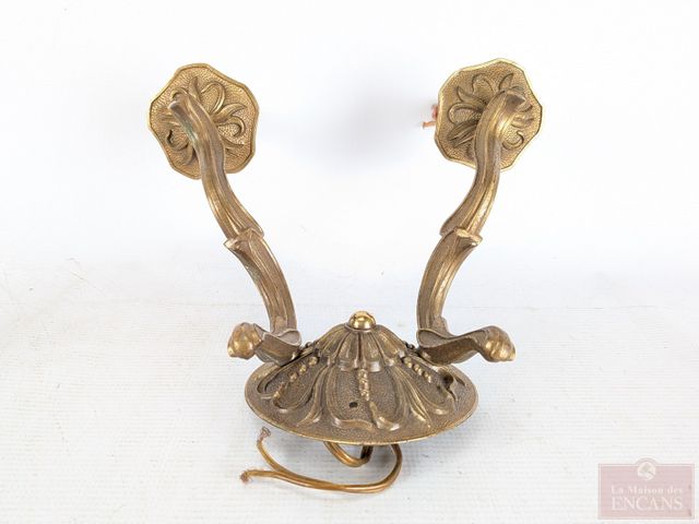 Lot # 23 - Paire d'appliques murales en laiton doré de style art-nouveau, mesurant 8.5 pouces de hauteur