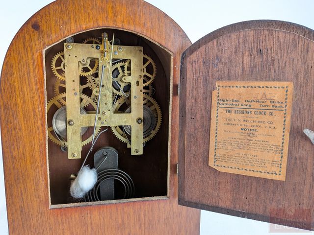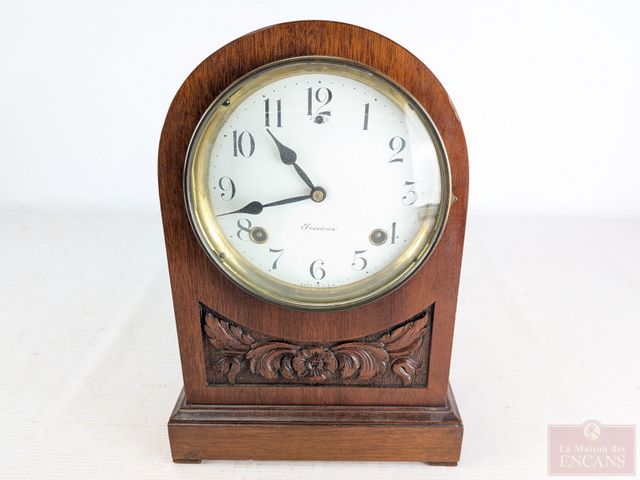 Lot # 4 - Horloge américaine Sessions avec sa clef et son pendule, mesurant 13 pouces de hauteur, fonctionnelle