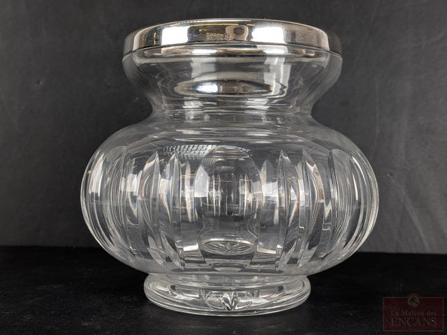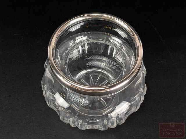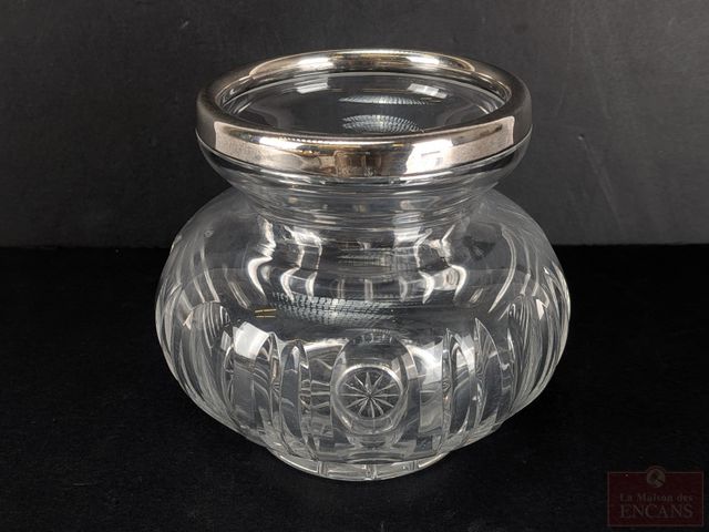 Contenant à bonbons allemand en cristal et argent 835, mesurant 4.25 pouces de hauteur