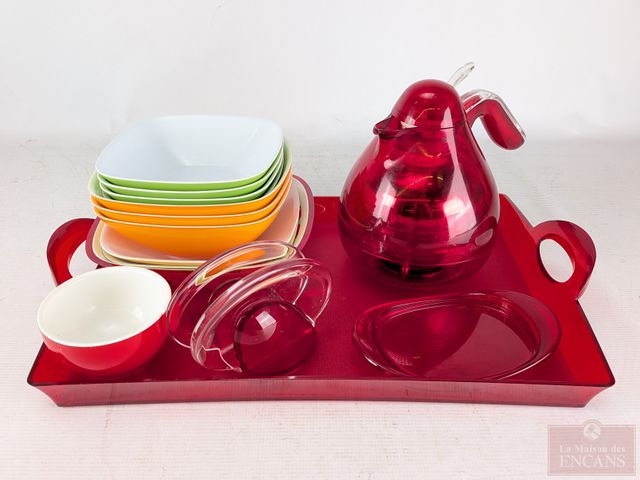 Lot # 142 - Lot de vaisselle design Guzzini, fait en Italie, le cabaret mesurant 21.5 pouces