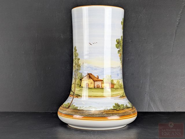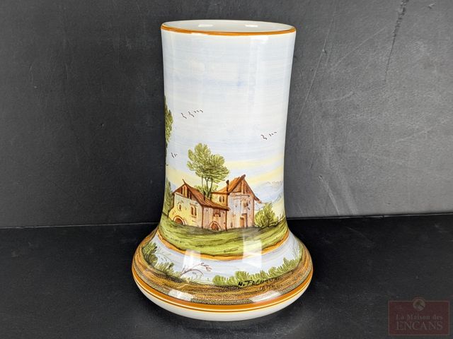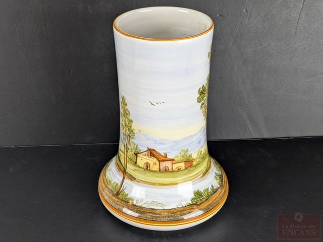 Lot # 154 - Vase en porcelaine italienne, signé, peint à la main et mesurant 9 pouces de hauteur